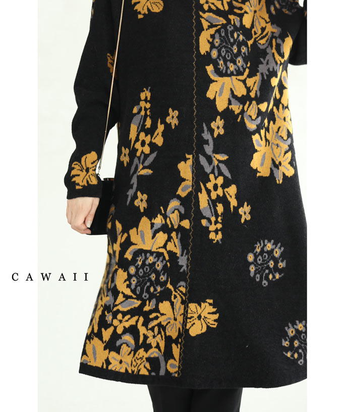 柄が入っている様なニットワンピは、ちょっと上品にヒールやブーツなどと合わせてもオシャレかも。