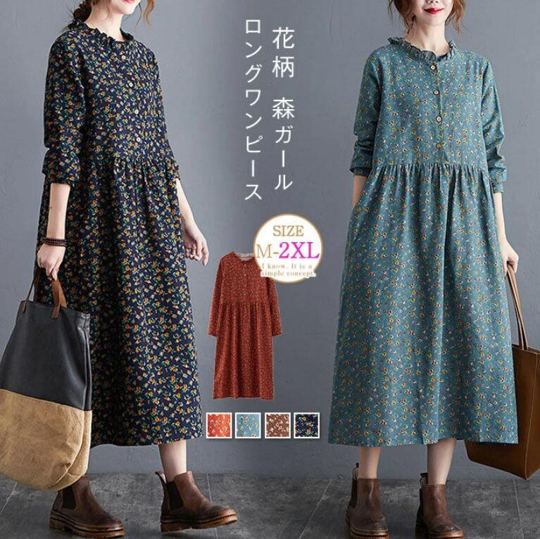ワンピース 春 レトロ 花柄 ...
