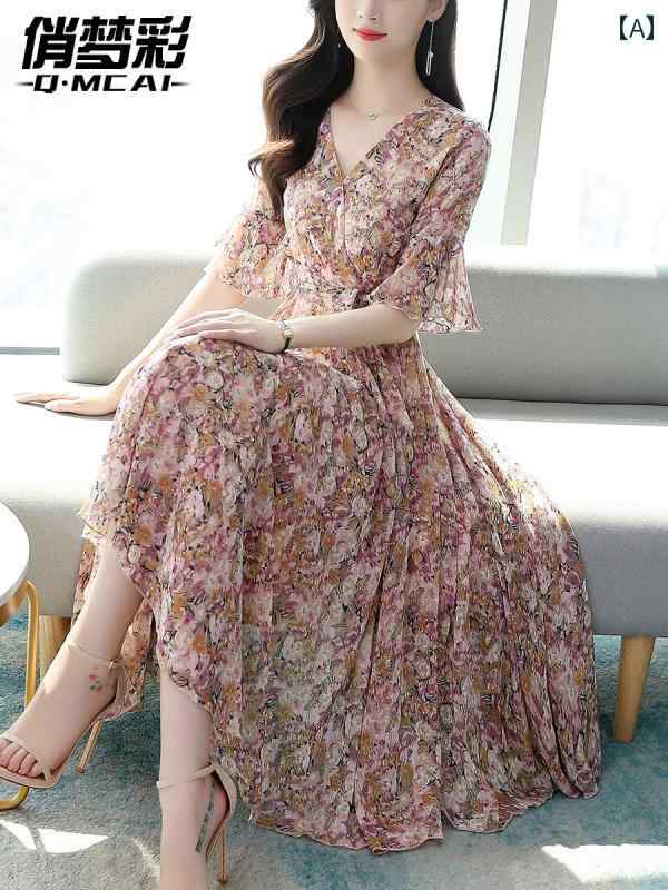 シフォンワンピース 夏 半袖 ...