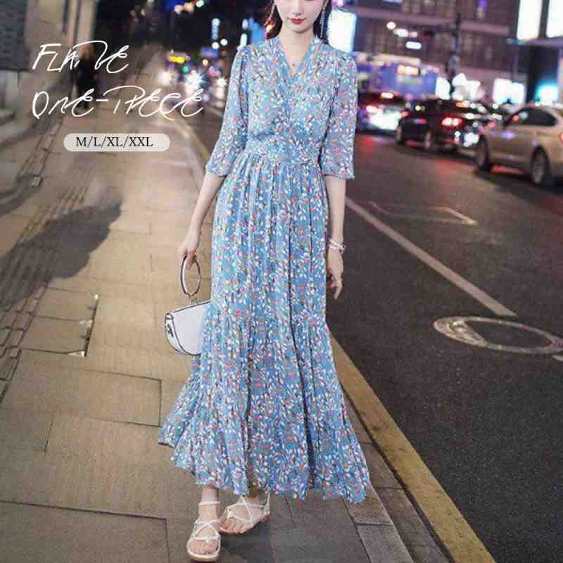 花柄 シフォンワンピース 7分...