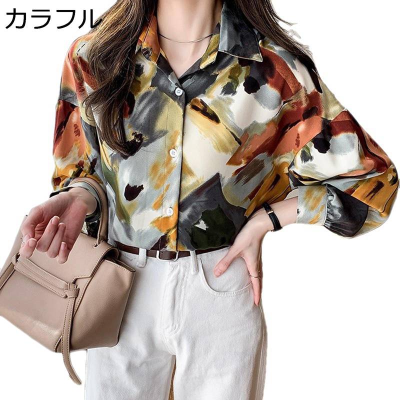 プリント柄 ブラウス レディ...