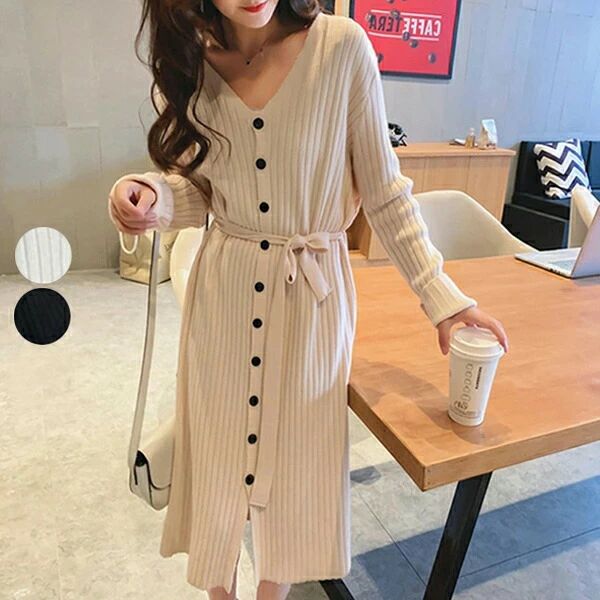 ニットワンピース Vネック レ...