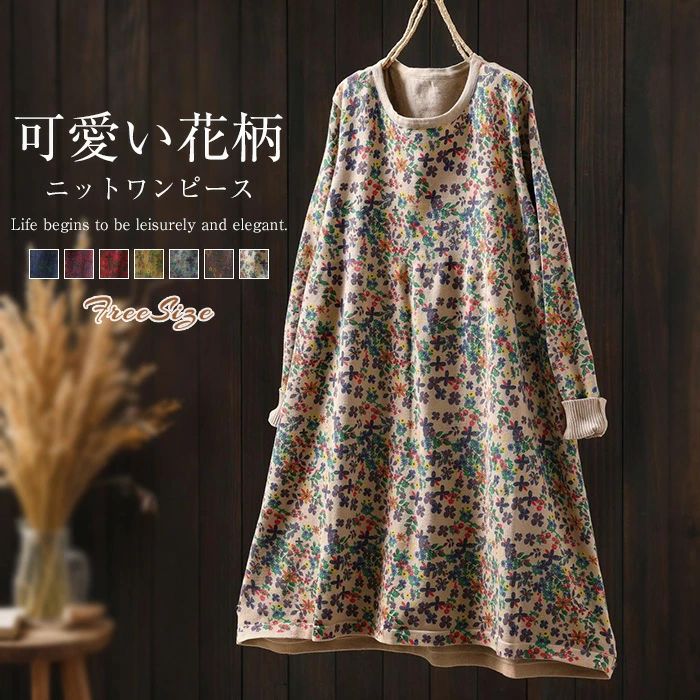 ニット ワンピース 花柄 ニッ...