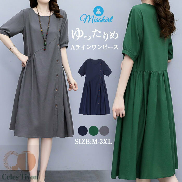 ワンピース 綿麻 aライン レ...