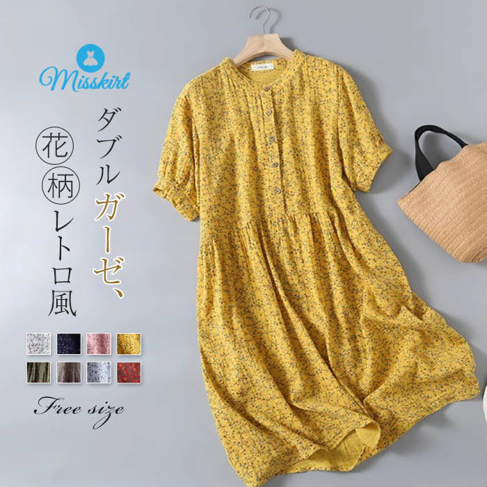 綿 2重ガーゼ ワンピース 花...