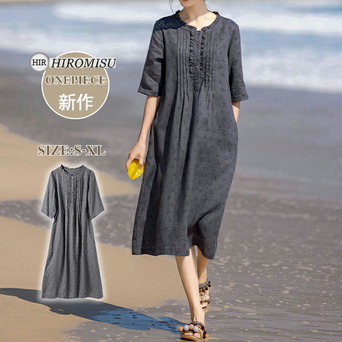 森ガール 半袖ワンピース 大...