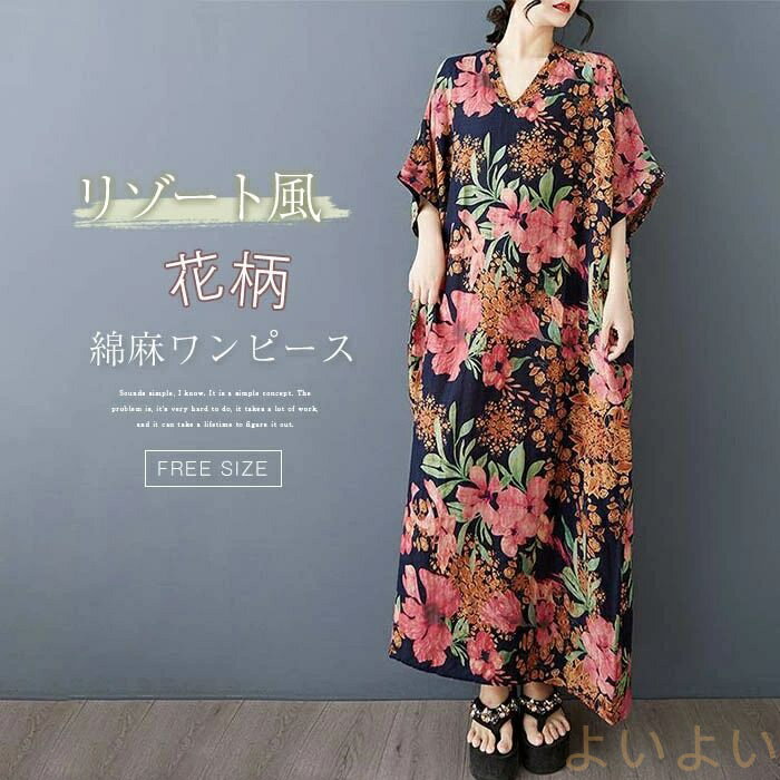 Aライ 綿麻風 着痩せ ゆった...