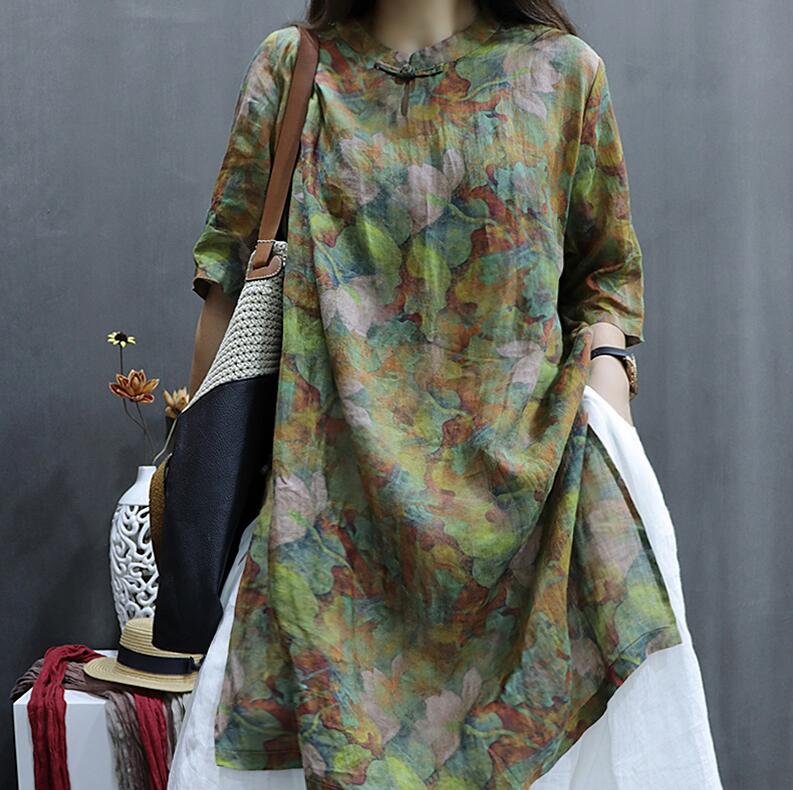 トッ チャイナボタン 綿麻風...