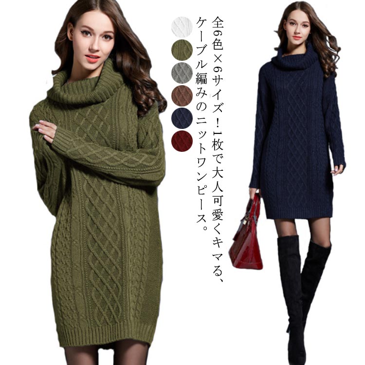 ニットワンピース ケーブル編...