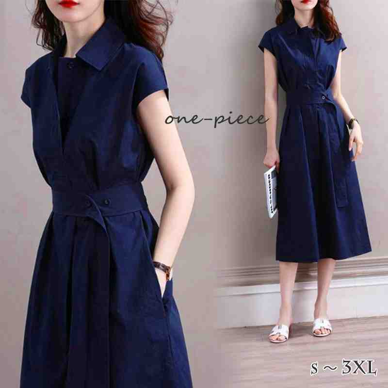 ワンピース 半袖 膝丈 きれい...
