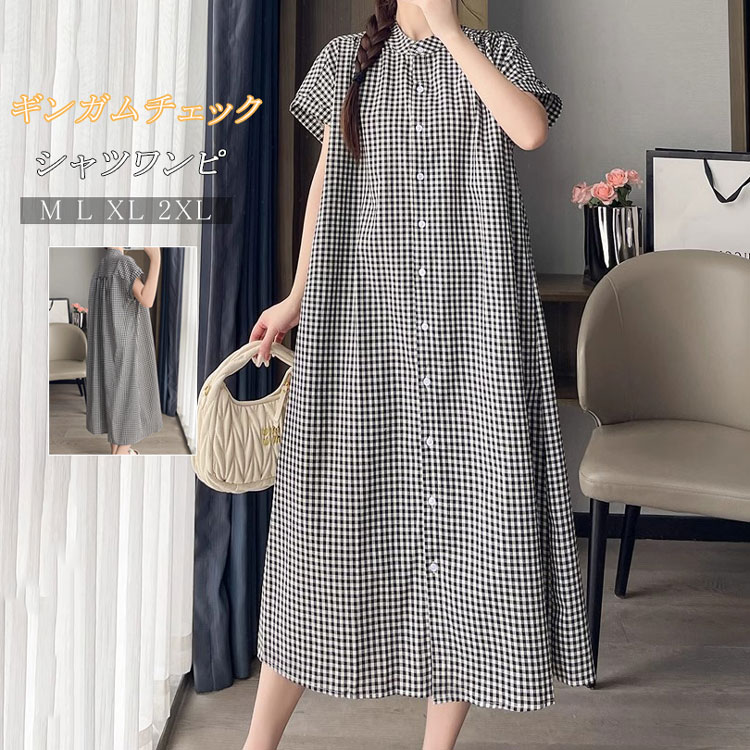 送料無料 半袖 シャツワンピ...