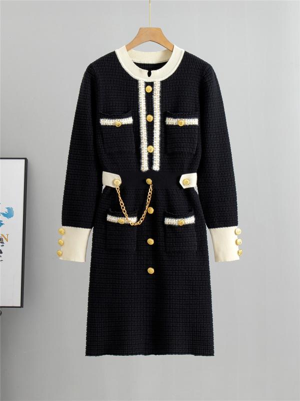 ワンピース 長袖 パールチェ...