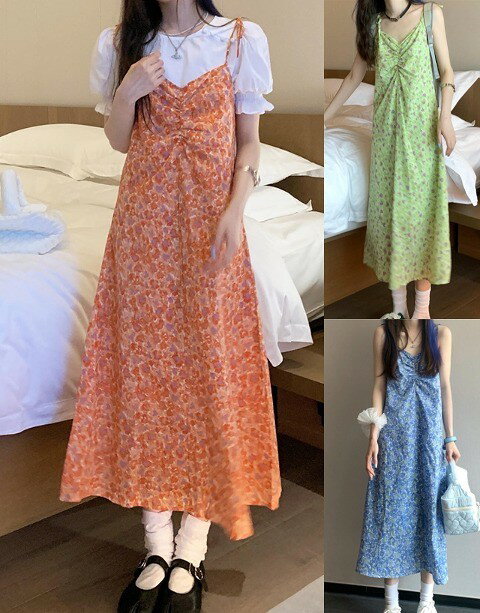 • キャミソールワンピース フリ...