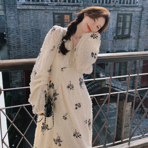 ロングワンピース 長袖 刺し...