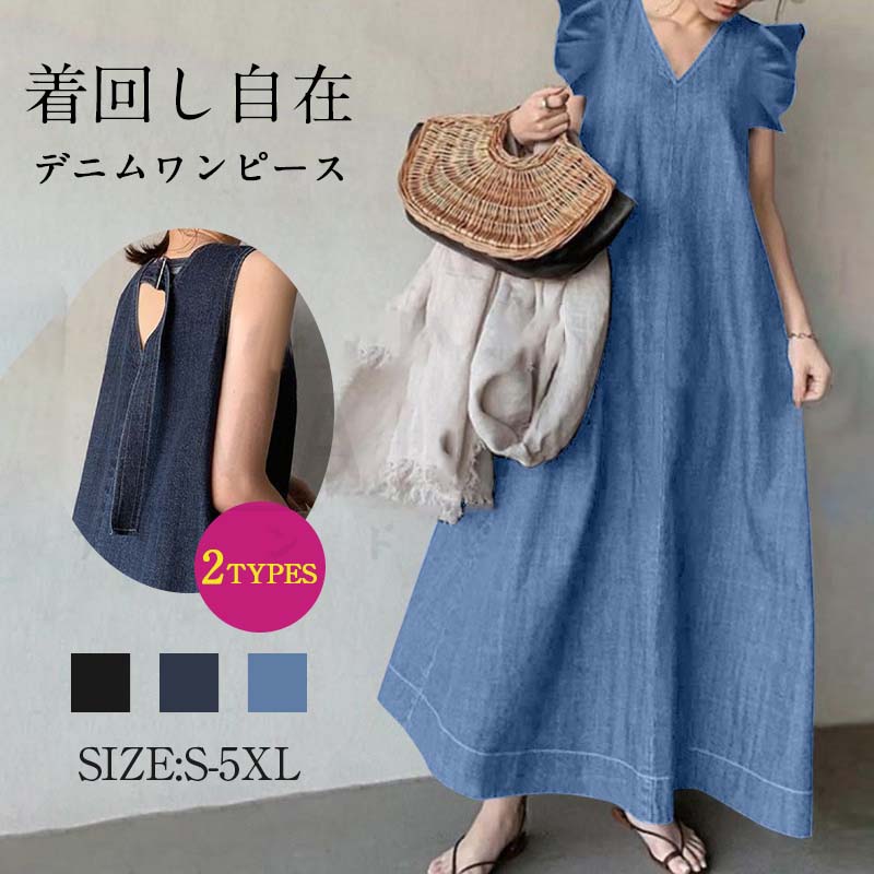 ロングワンピース デニムワン...
