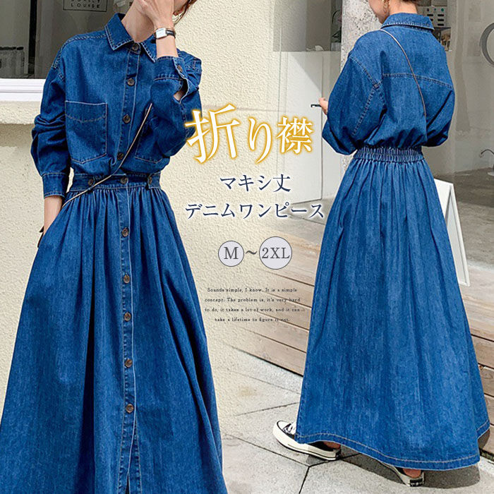春 折り襟 ラップ デニムワン...