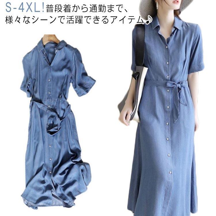 デニムワンピース ロング丈 ...