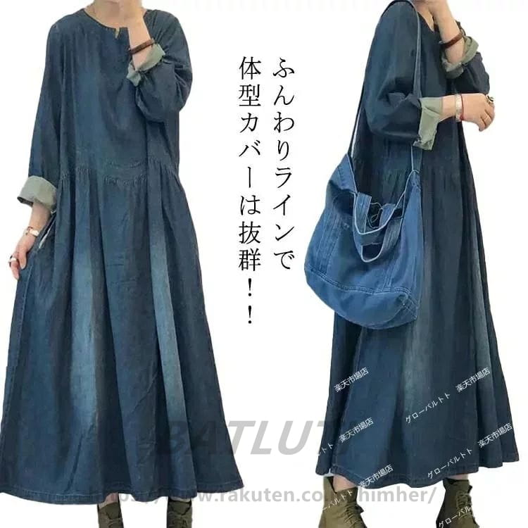 冬 秋 デニムワンピース オー...