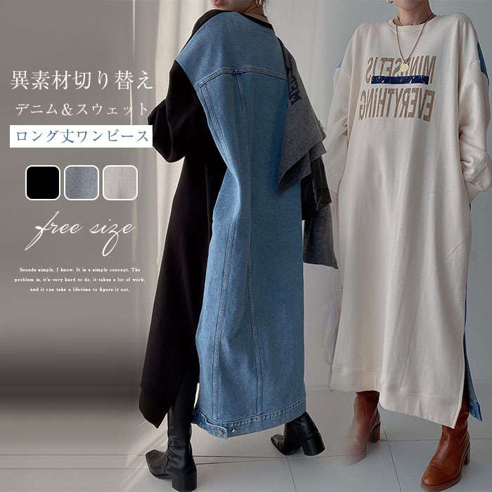 秋新作 デニムワンピース 長...