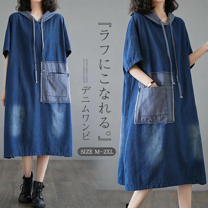 デニムワンピース春夏秋半袖...