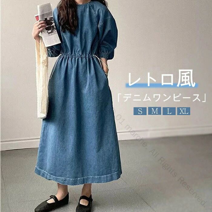 全2色 デニムワンピ 長袖 切...