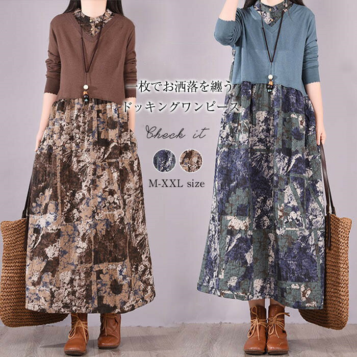 ワンピ 花柄 ドッキング ワン...