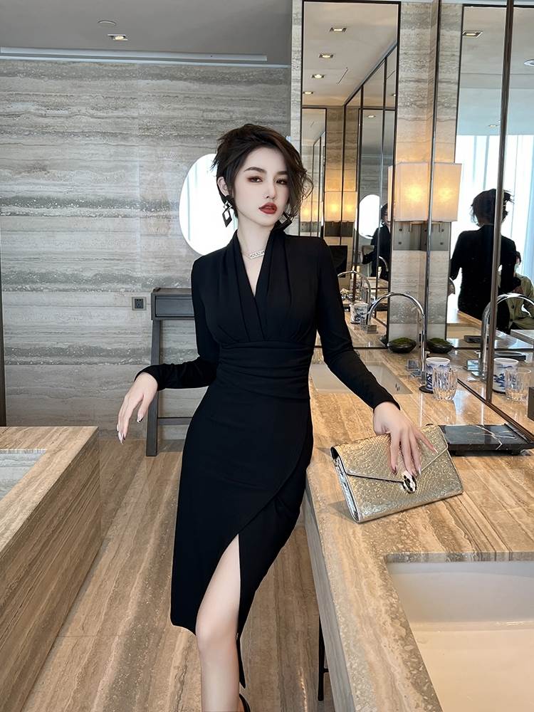 スリット Vネック ミモレ丈 ...