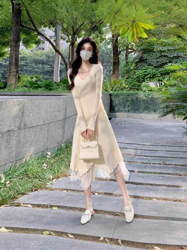 ワンピース 春 長袖 ニットワ...