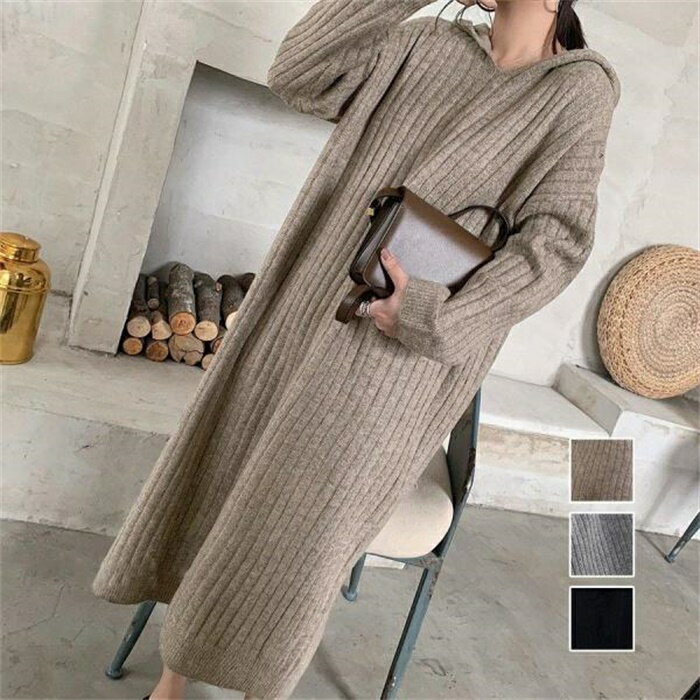 フード付き ニットワンピース...