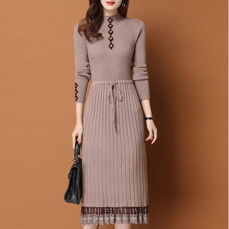 ニットワンピース 冬 膝丈ワ...