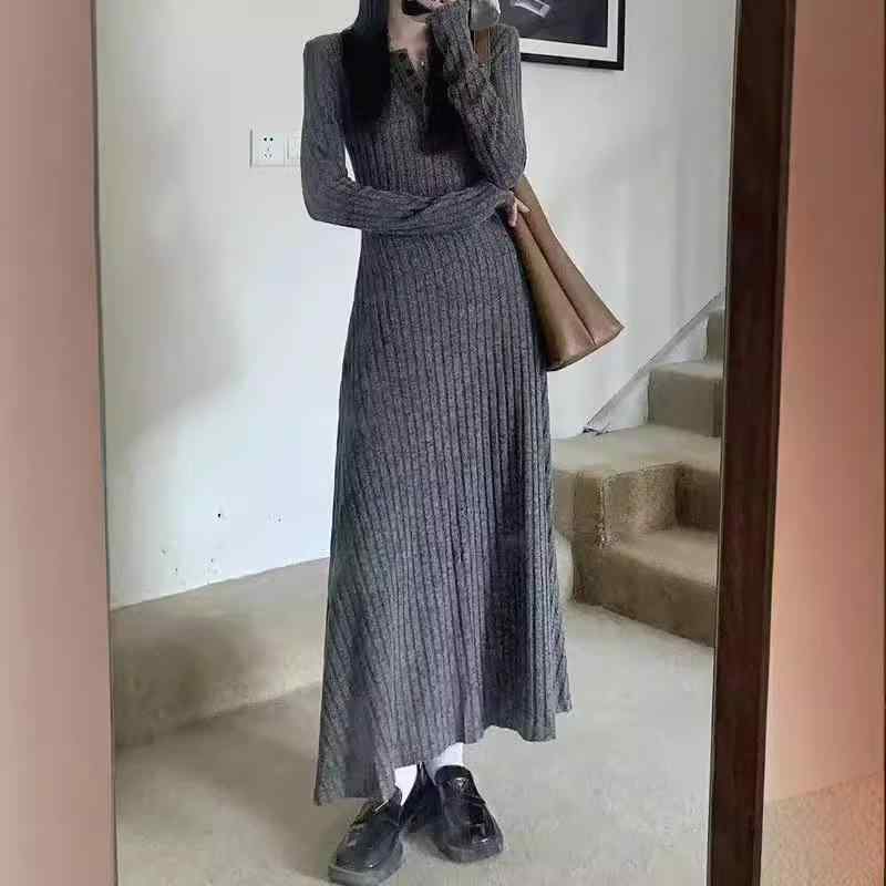 ニットワンピース 冬 膝丈ワ...