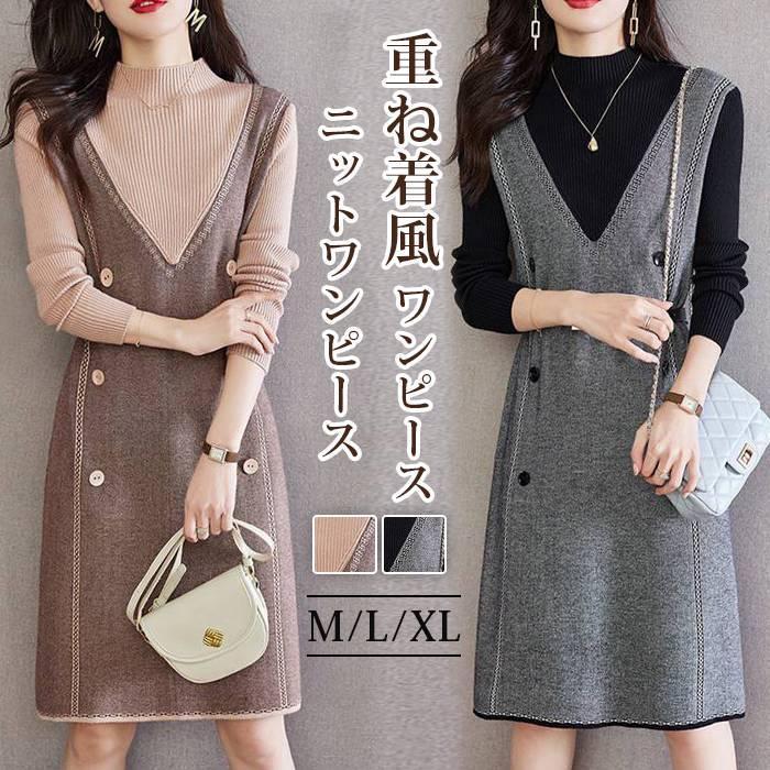 ニットワンピース 重ね着風 ...