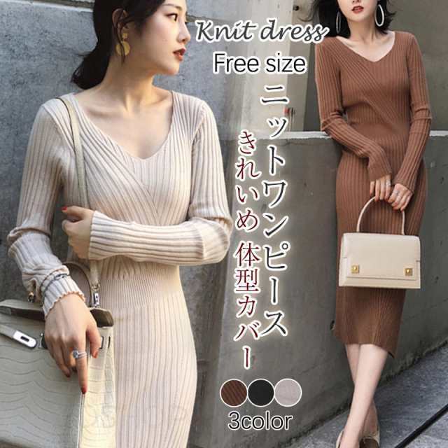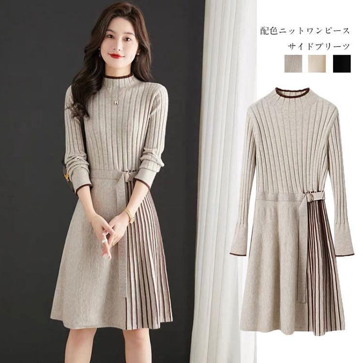 ニットワンピース 膝丈 秋冬 ...