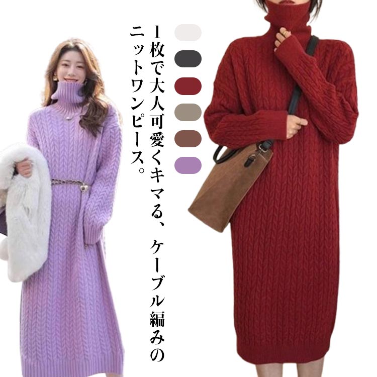 ニットワンピース 厚手 長袖 ...