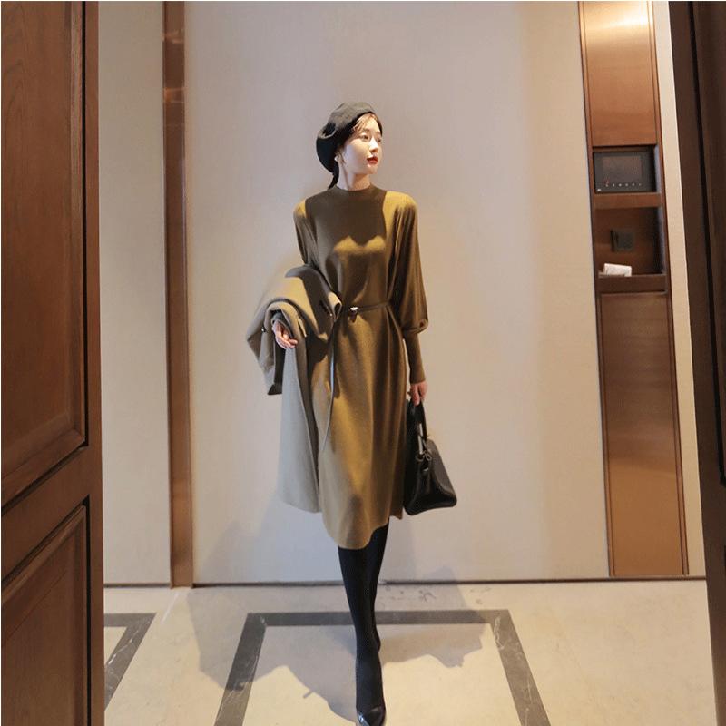 ニットワンピース 膝丈 Aライ...