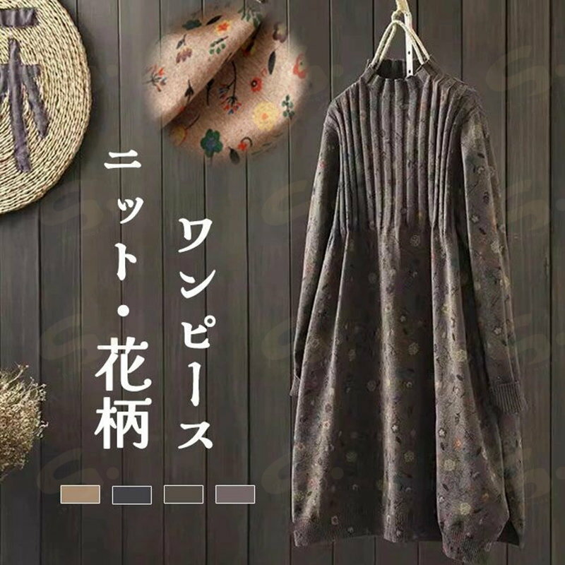 秋冬 膝丈 長袖 セーター ワ...