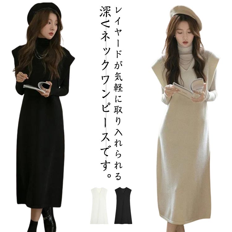 春秋冬 ワンピース ニットワ...