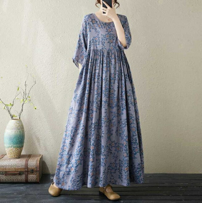 新品☆ロングワンピース 綿麻 ...