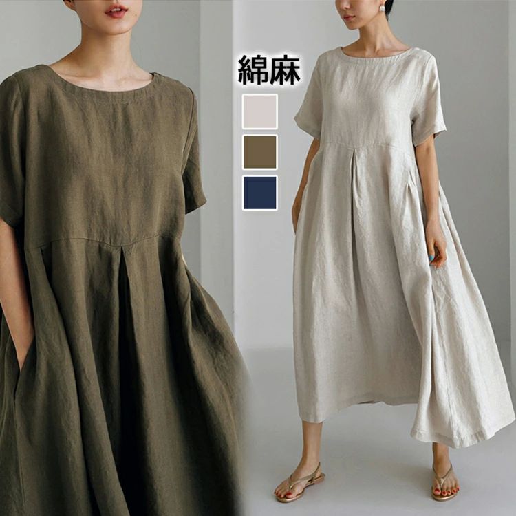 綿麻ワンピース ノースリーブ...