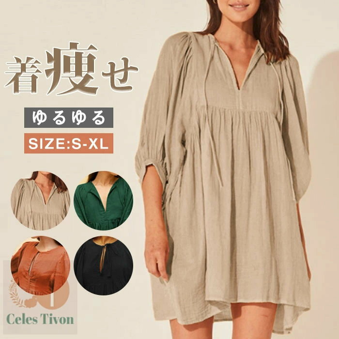 ワンピース 夏 5分袖 レディ...