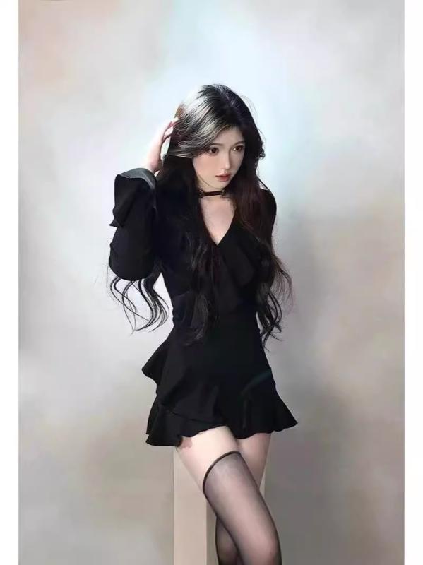 ミニワンピース 長袖 Vネック...