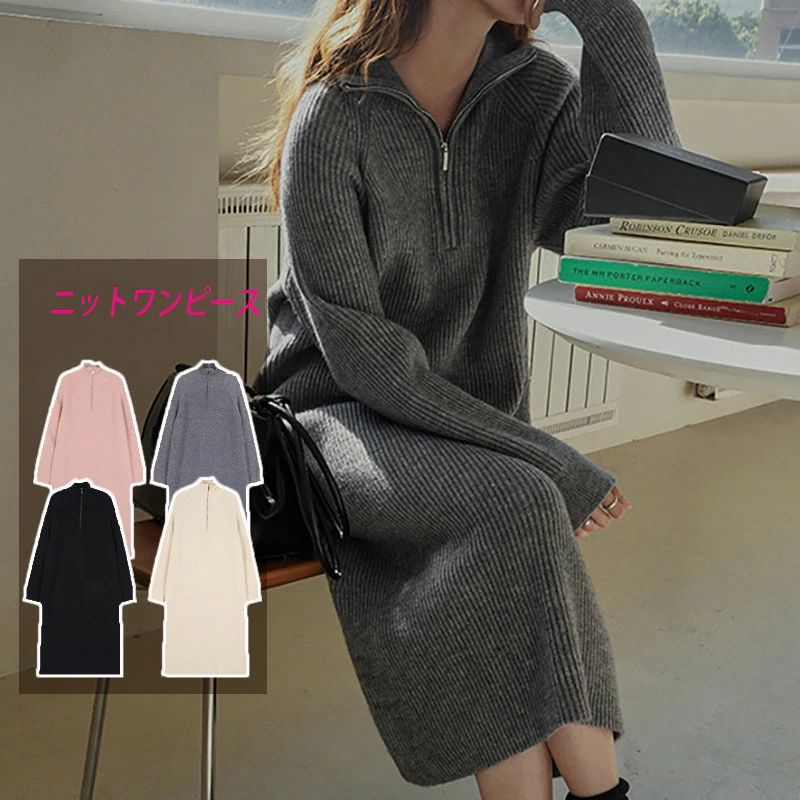 ニットワンピース ハーフジッ...