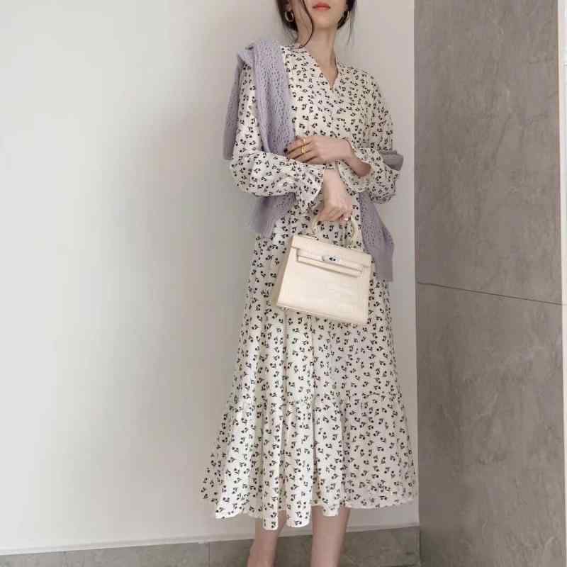 ワンピース 秋 白 小花柄 フ...