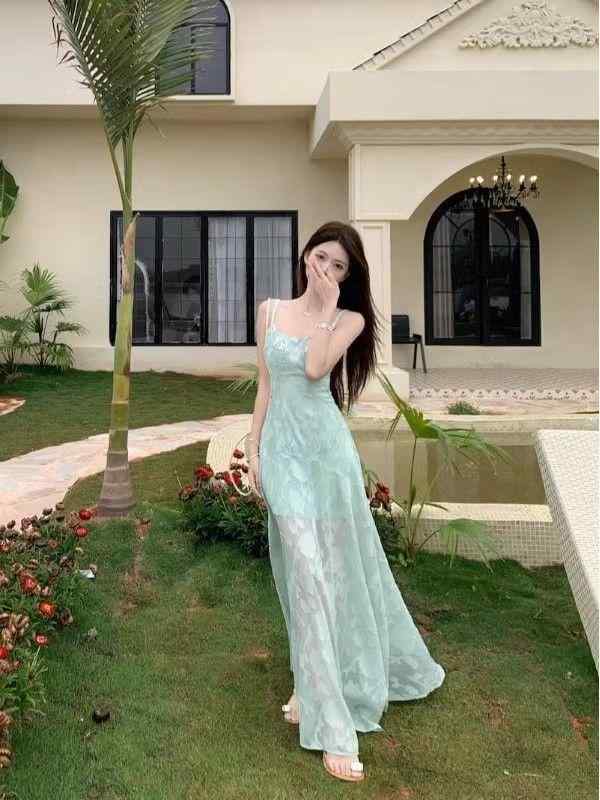ワンピース 女性用 夏 緑 白...