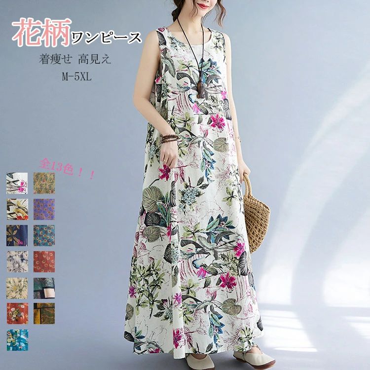 綿麻ワンピース レディース ...