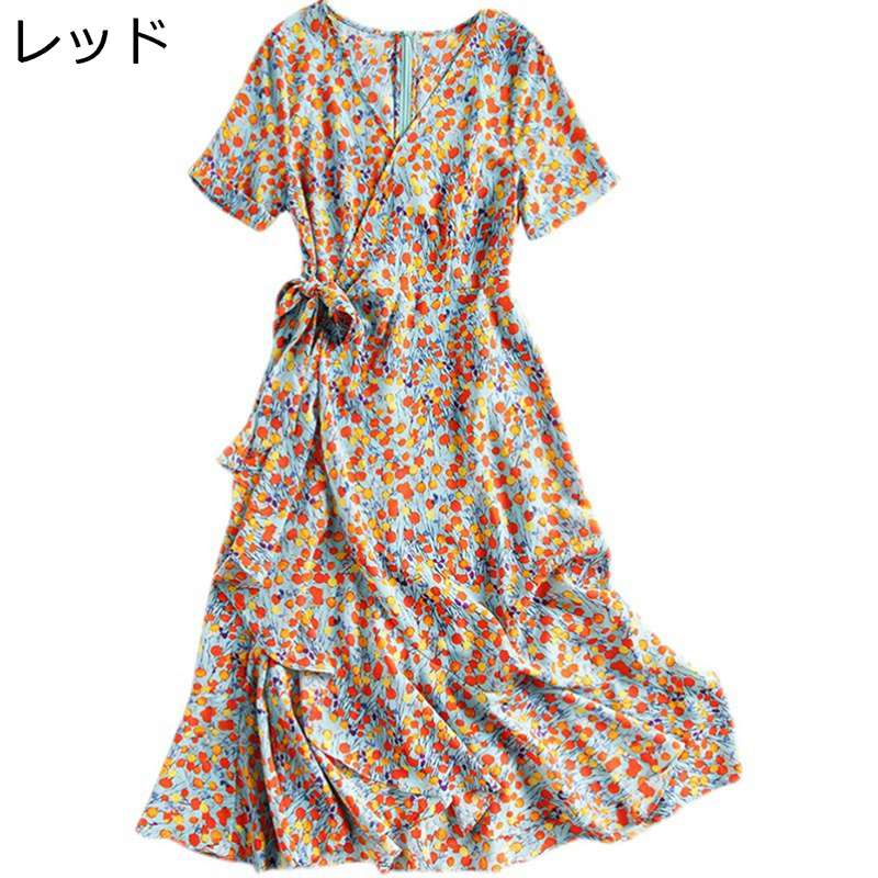 花柄ワンピース ドレス Vネッ...