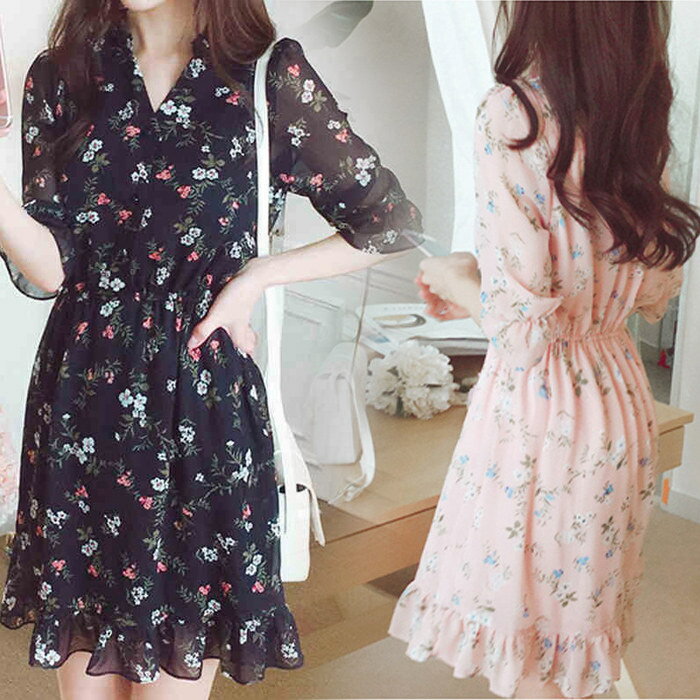 - 花柄ワンピース