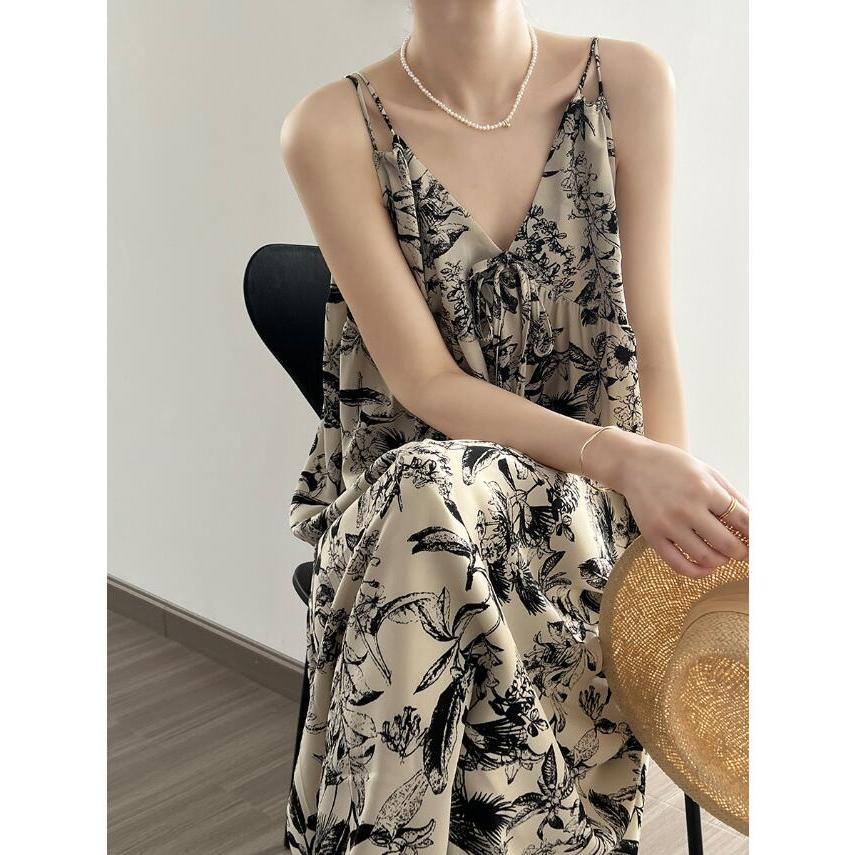 水墨プリントvネックキャミソ...