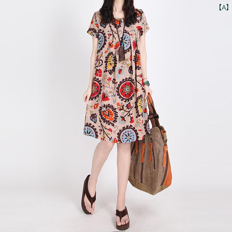 Allegra K 花柄ワンピース 丸...