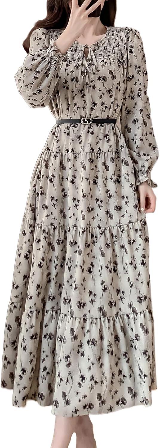 Allegra K 花柄ワンピース タ...